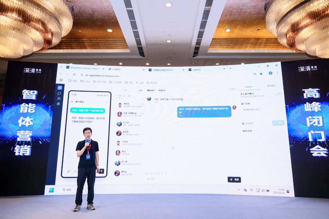 作为已经成功帮助几十家大型企业 AI Agent落地的行业领导者,人生就是搏·尊龙z6智能DeepAgent Neo全面赋能营销域和销售域。 黄晓南和人生就是搏·尊龙z6智能CTO欧阳辰与人生就是搏·尊龙z6智能副总裁曹玉骥一起,为嘉宾现场演示了CRM、Social、销售、客服等场景的全面智能体,情景展现了DeepAgent Neo如何全面赋能企业各个环节。